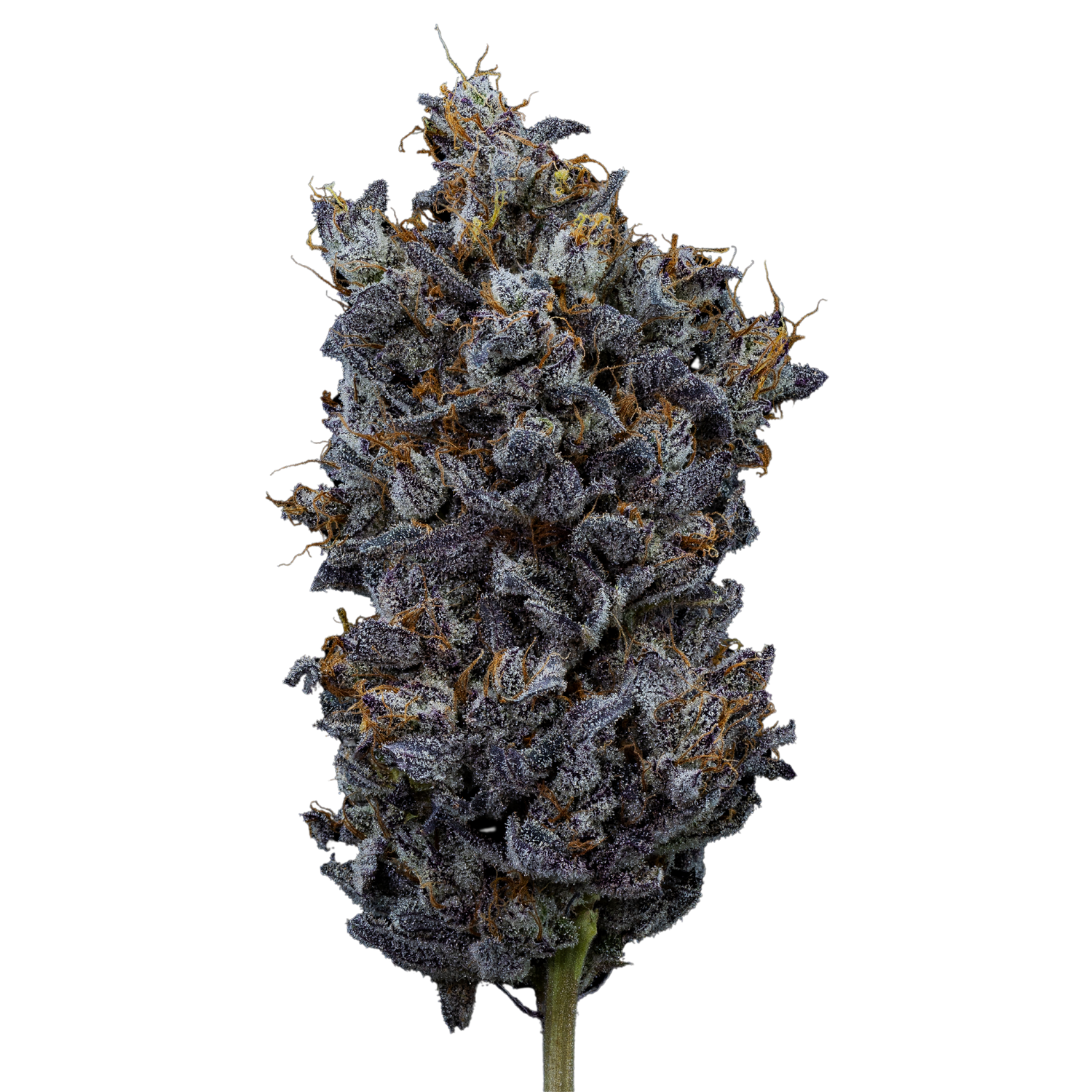 Boasting deep purple and forest green colors throughout, with bright orange flecks that pop and a bright shine of trichomes, these buds are truly a sight to behold. It’s like looking in a deep evergreen forest with sun rays shining through.